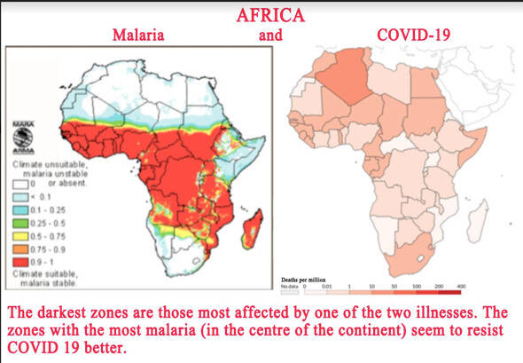 One of the most interesting cases concerns Sudan and South Sudan. These two states were a single country until 2011. Since separation, their border corresponds almost exactly to the limits of malaria. Until 14 May, South Sudan, which is in the malaria zone, had no deaths from COVID-19, while Sudan, sheltered from malaria, already around 100 deaths.